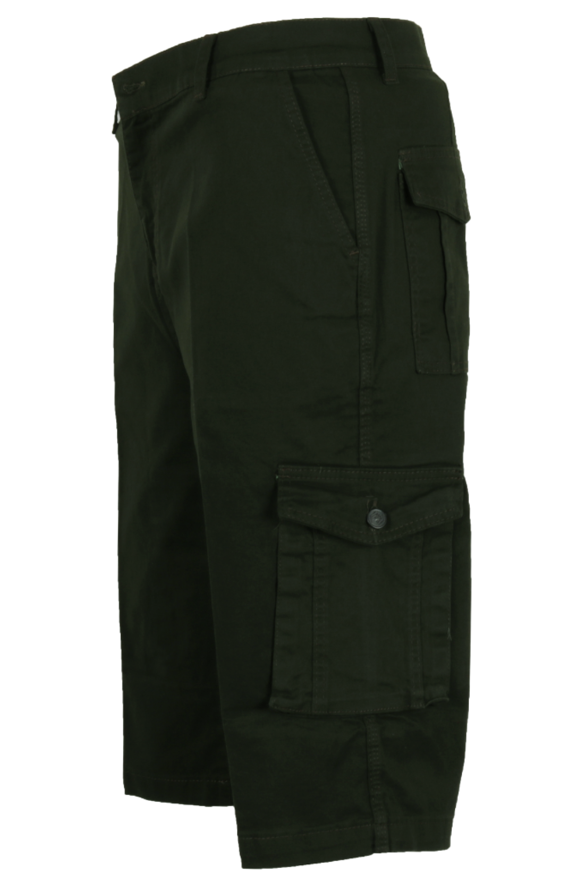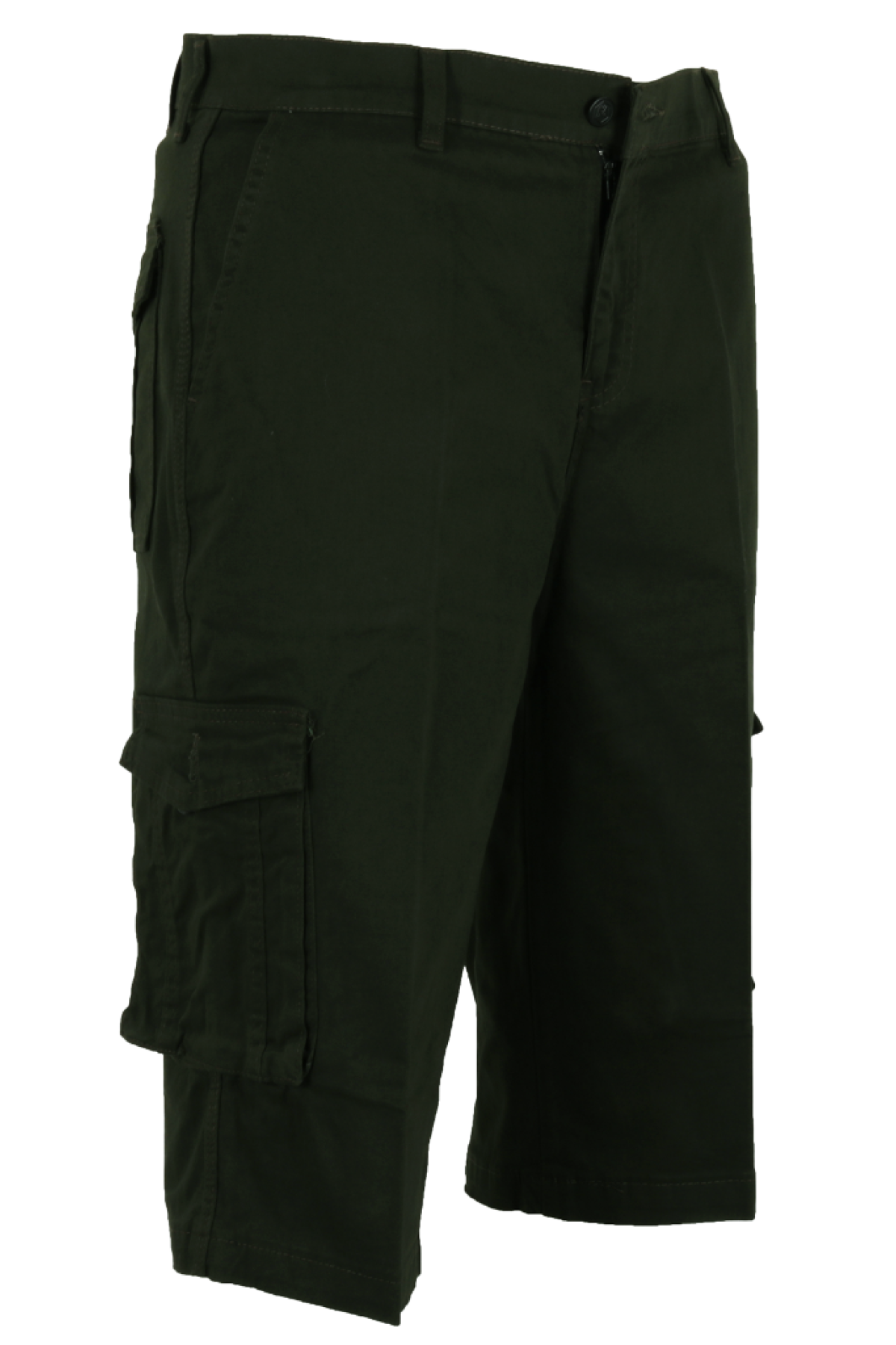 Erkek Likralı Haki Renk Keten Kapri Kargo Cep Bermuda Normal Kesim