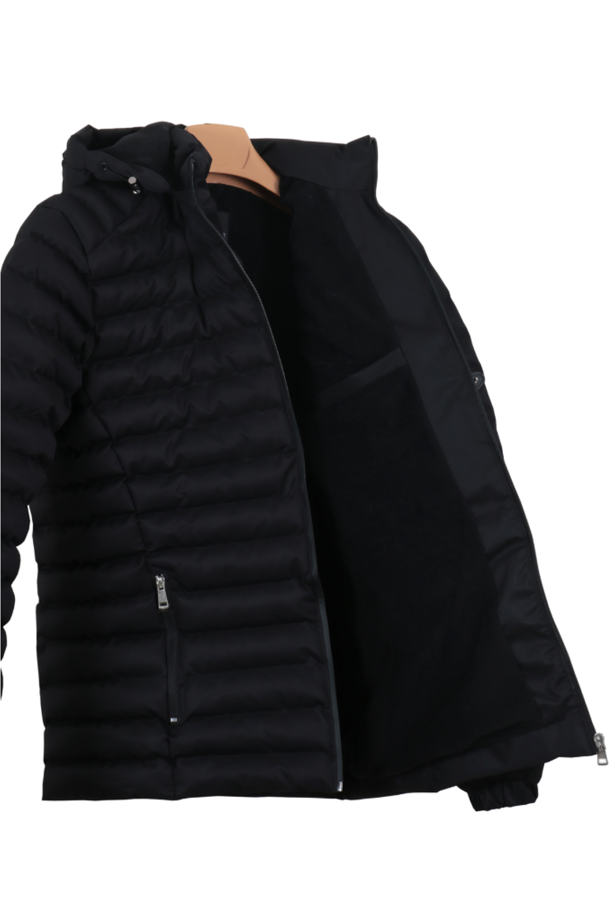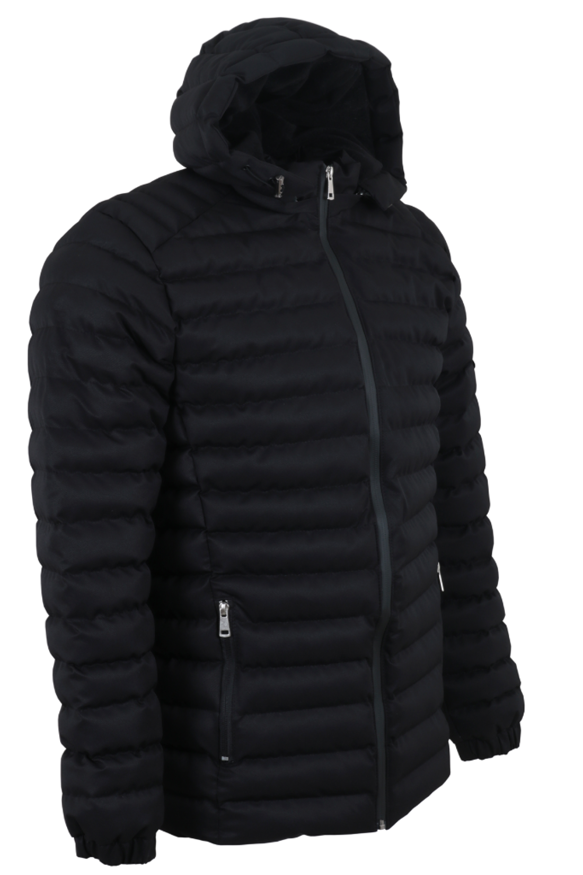 Erkek Dar Kesim Siyah Renk Kapşonlu Şişme Mont RAR01369